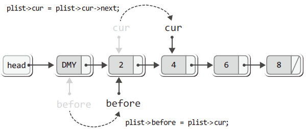 plist -> before -> next = plist -> cur -> next;