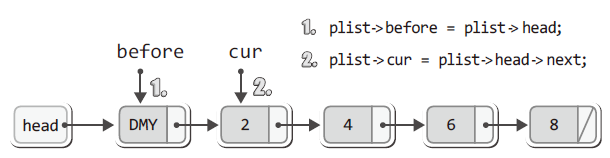 plist -> before = plist -> cur;