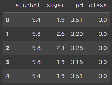 - 클래스 0이면 레드 와인, 1이면 화이트 와인