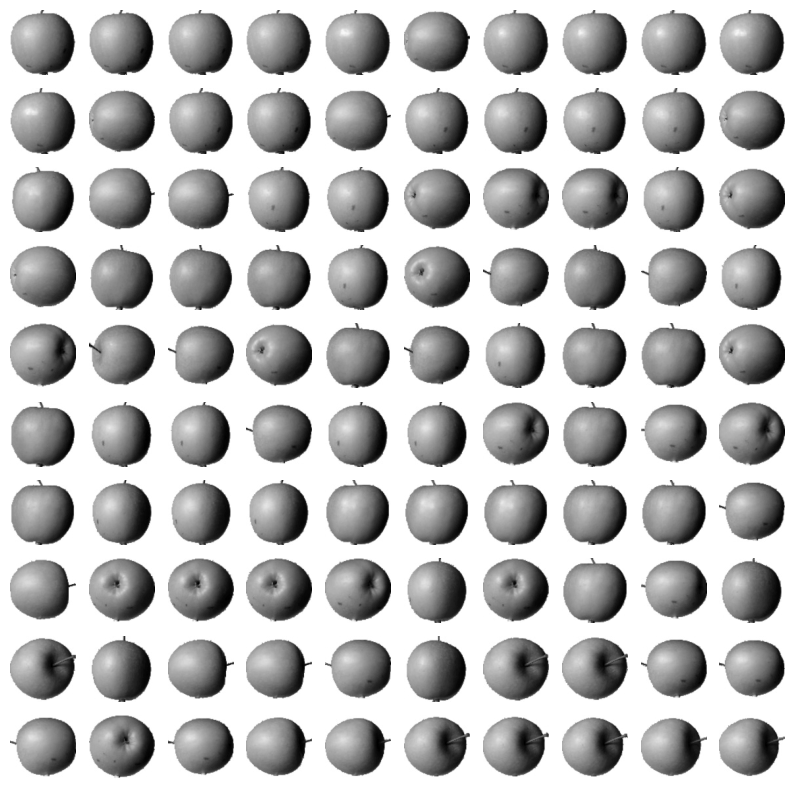- 100개의 사과샘플의 각 10000개 픽셀의 평균값