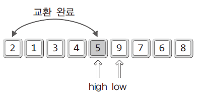 if(low <= high) // 교차되지 않은 상태라면 Swap 실행
