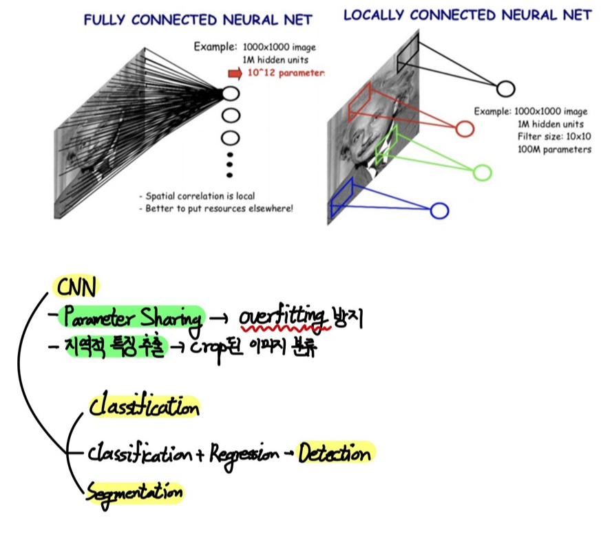 - parameter sharing으로 parameter의 수를 획기적으로 감소시킴 -> overfitting 방지
