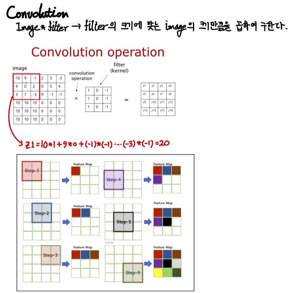 - 입력 이미지와 필터 사이에 convolution 연산으로 나온 결과를 feature map이라 한다.