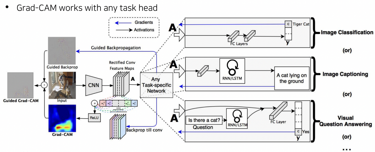 >> Grad-CAM은 뒤에 어떤 구조가 오더라도 사용 가능!!