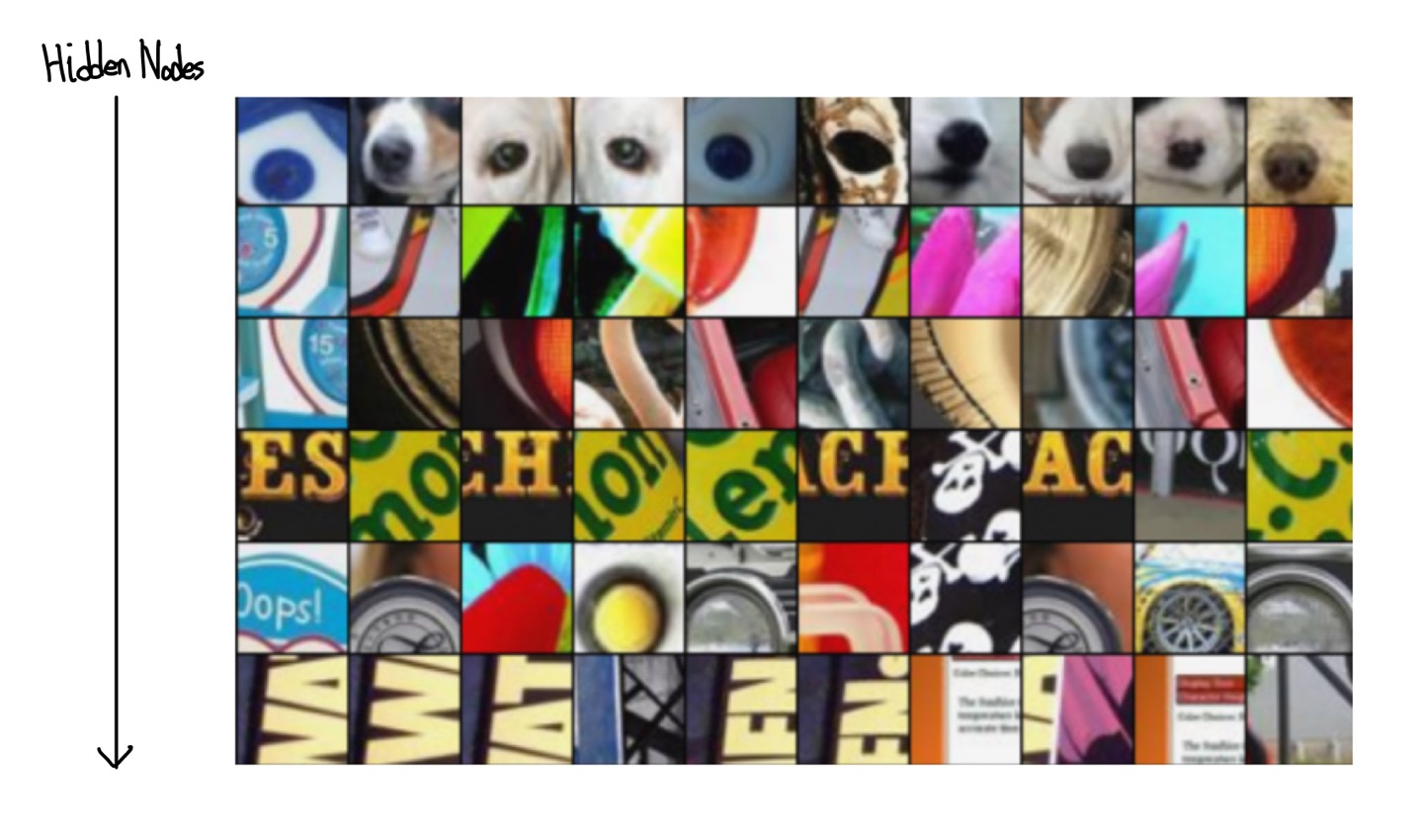 - CNN의 각 층에서 가장 높은 activation 값을 가지는 hidden node의 patch를 확인하여, 해당 node에서 무슨 역할을 하고 있는지 시각화