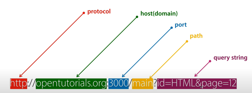 - port: 컴퓨터가 실행되고있는 수많은 프로세스들의 주소, 입력하지 않을 시에 기본 포트번호 적용 (http는 80, https는 443)