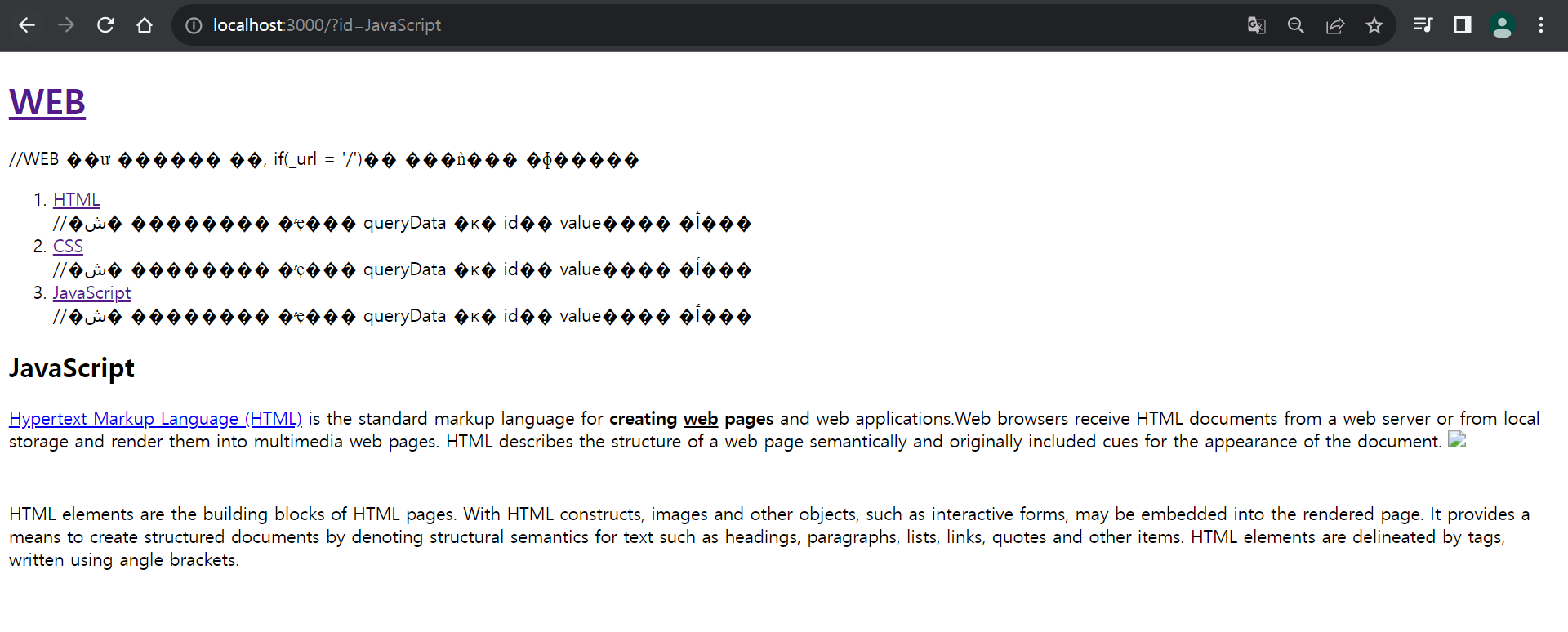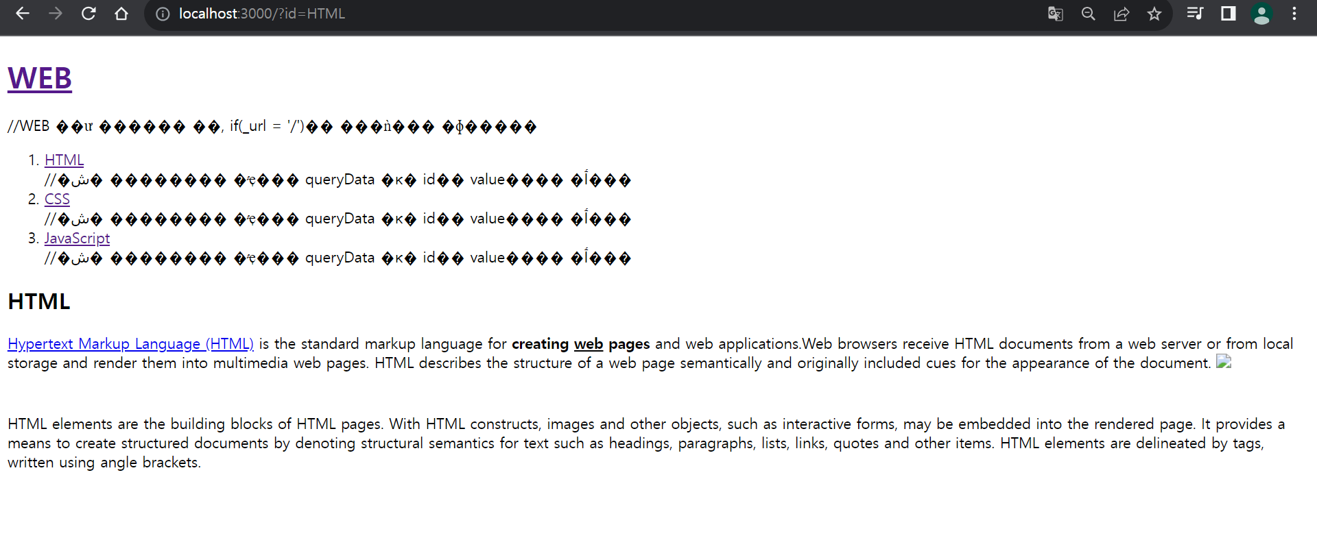 <li><a href="/?id=HTML">HTML</a></li> //해당 페이지의 주소에서 queryData 부분 id의 value값을 바꿔줌