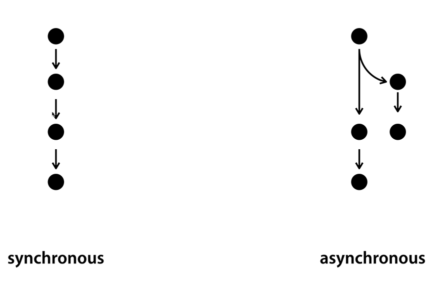 - Synchronous: 직렬적으로 일처리하는 것을 동기적이라 한다.