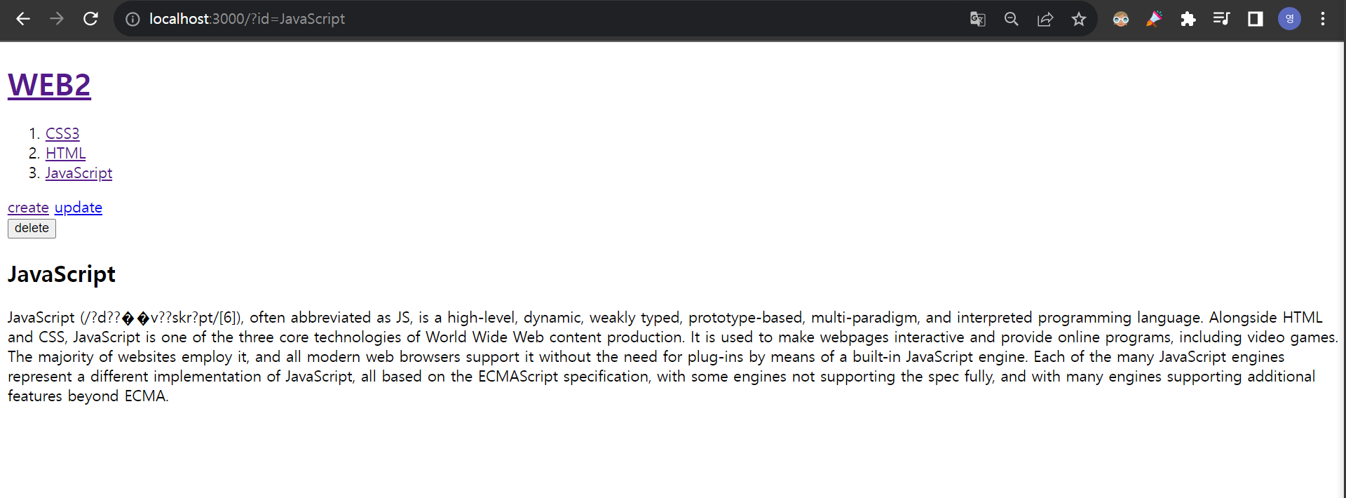 `<a href = "/create">create</a> <a href = "/update?id=${title}">update</a>`
