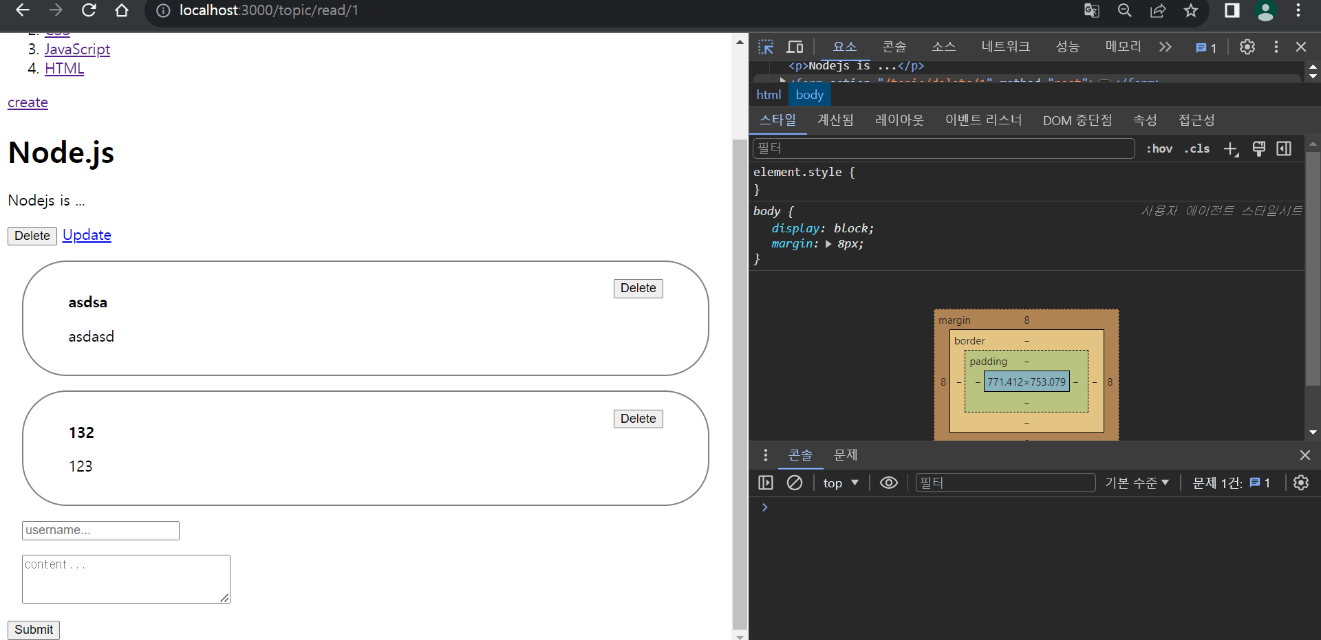 >> div에는 comment 내용, form에는 delte가 포함돼있기 때문에 distplay: flex로 둘을 나눌 수 있음