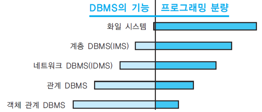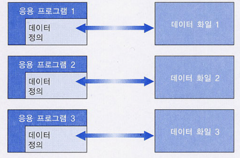 - file에 접근하는 방식이 응용 프로그램 내에 상세하게 표현되므로, 데이터에 대한 응용 프로그램의 의존도가 높음