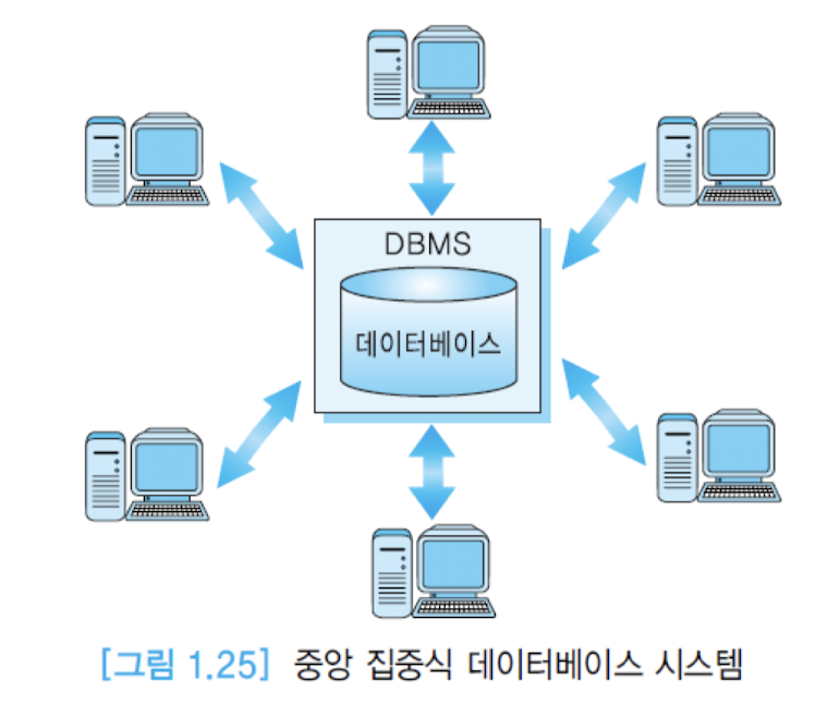 - 데이터베이스 시스템이 하나의 컴퓨터 시스템에서 운영됨