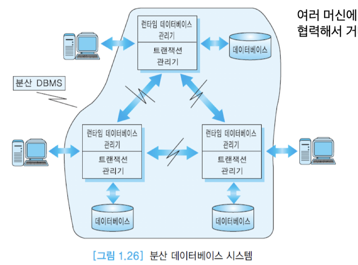 - 네트워크로 연결된 여러 사이트에 데이터베이스 자체가 분산됨 -> 데이터베이스 시스템도 여러 컴퓨터 시스템에서 운영됨