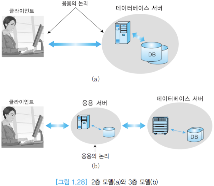 - 클라이언트와 데이터베이스 서버 사이에 응용 서버가 추가됨