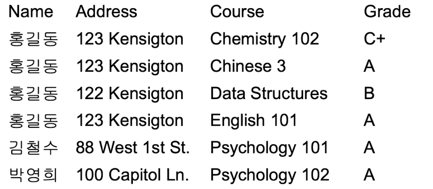- 데이터베이스의 일관성을 유지하기 위해서 정규화를 수행