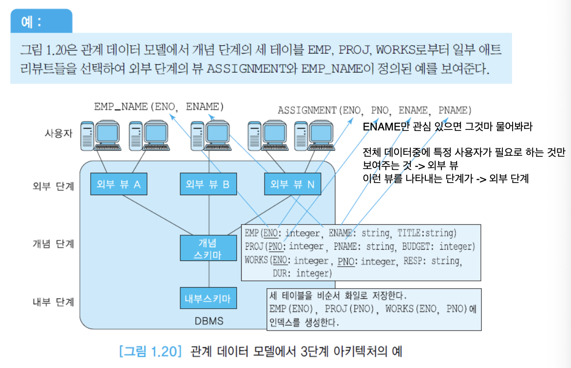 - 외부 단계(external level): 각 사용자의 뷰