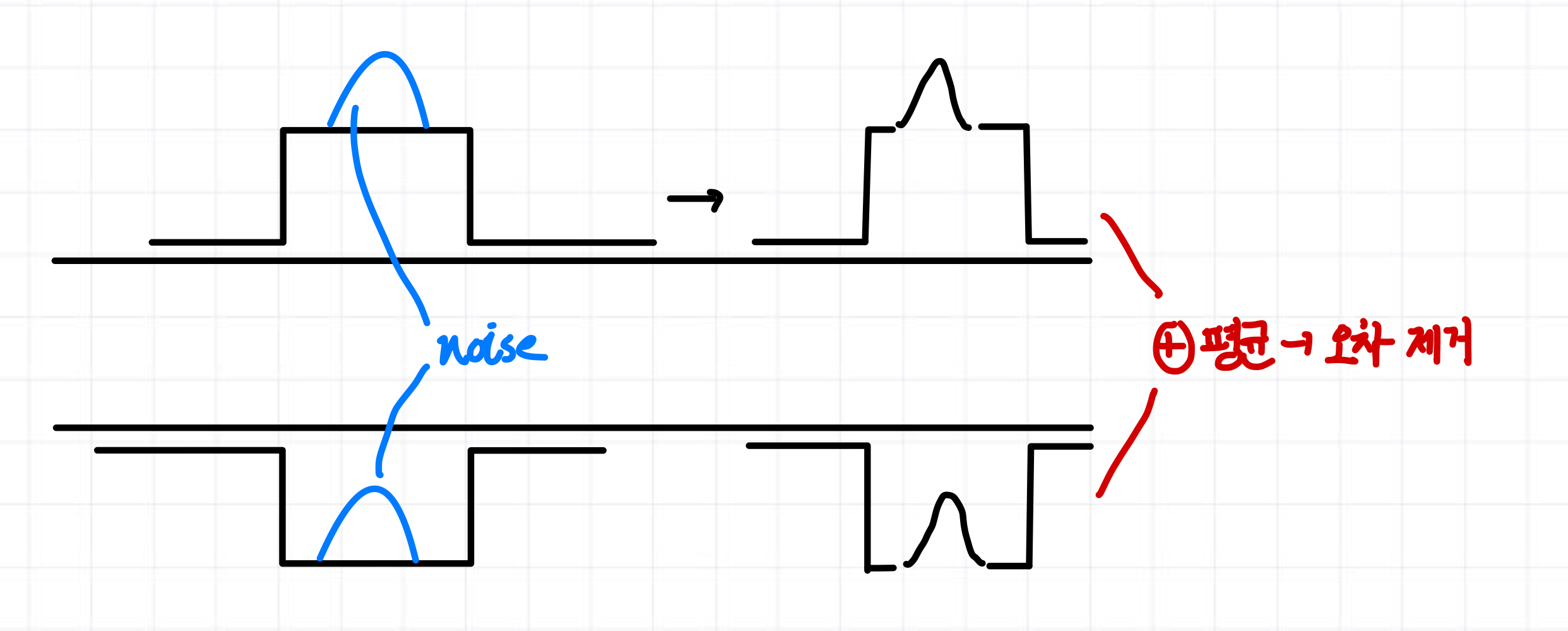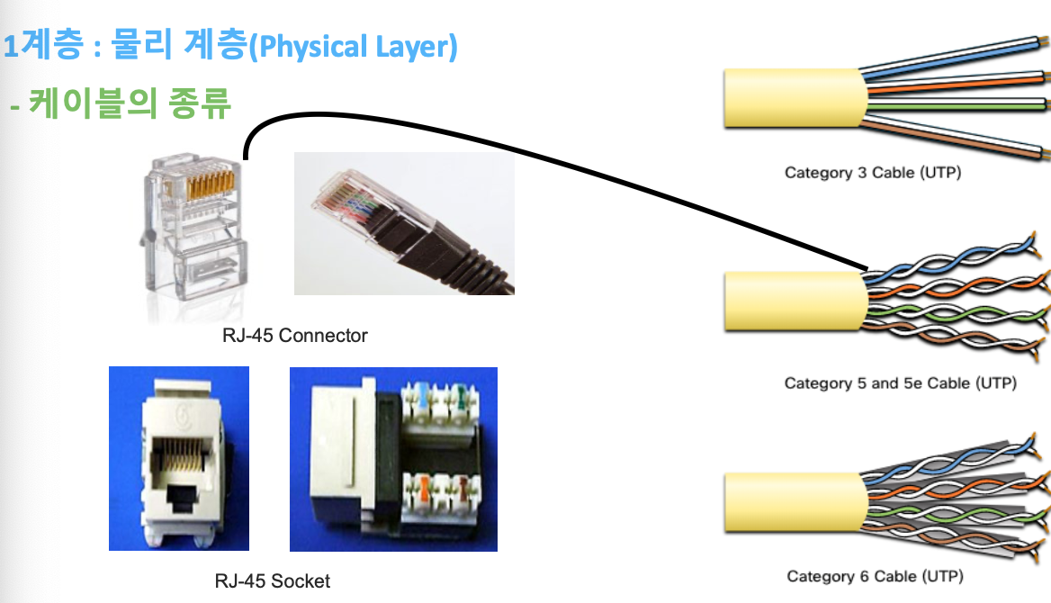- UTP, STP(Unshielded Twisted-Pair, Shielded Twisted-Pair) -> 내부 선이 pair?: 두 신호 평균내서 노이즈 제거, 꼬아놓은 이유?: 두 가닥의 선이 외부로부터 받는 영향을 평균적으로 받기 위해