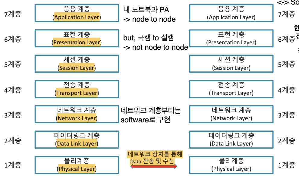 - 현재 우리가 사용하는 인터넷은 TCP/IP를 기반 -> TCP/IP가 OSI 7계층에 기반을 둔다.