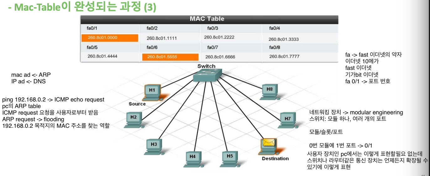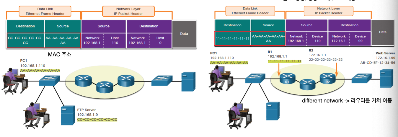 -> 목적지가 같은 네트워크에 있으면, 목적지의 MAC 주소를 Destination으로 설정