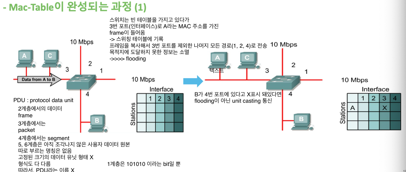 - 오늘날 쓰이지 않는다, 왜? -> 랜 환경에서는 충돌이 발생 X -> 스위치는 한 포트에서 들어온 신호가 어디로 갈지 딱딱 정하기 때문에 충돌할 일이 없다.