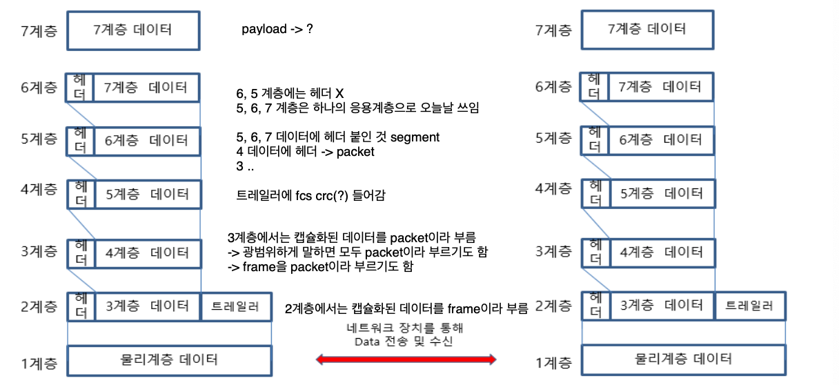 - 현재 우리가 사용하는 인터넷은 TCP/IP를 기반 -> TCP/IP가 OSI 7계층에 기반을 둔다.
