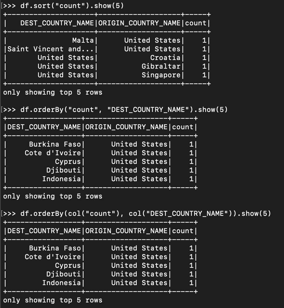 - 스파크의 컬럼은 스프레드시트, R의 dataframe, Pandas의 DataFrame 컬럼과 유사하다.