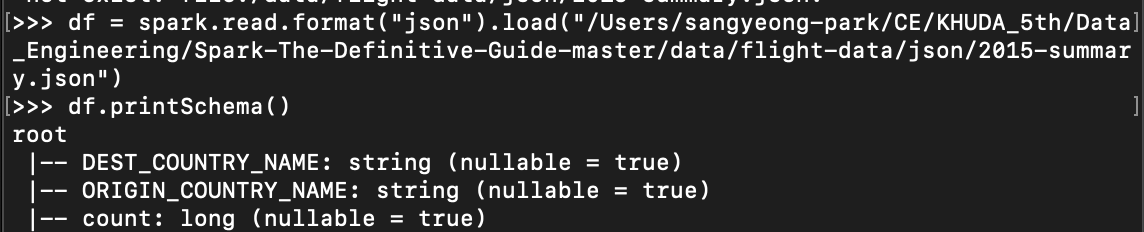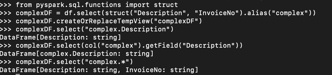-> 스파크 데이터 타입을 파이썬에서 사용하려면 위와 같은 코드 사용