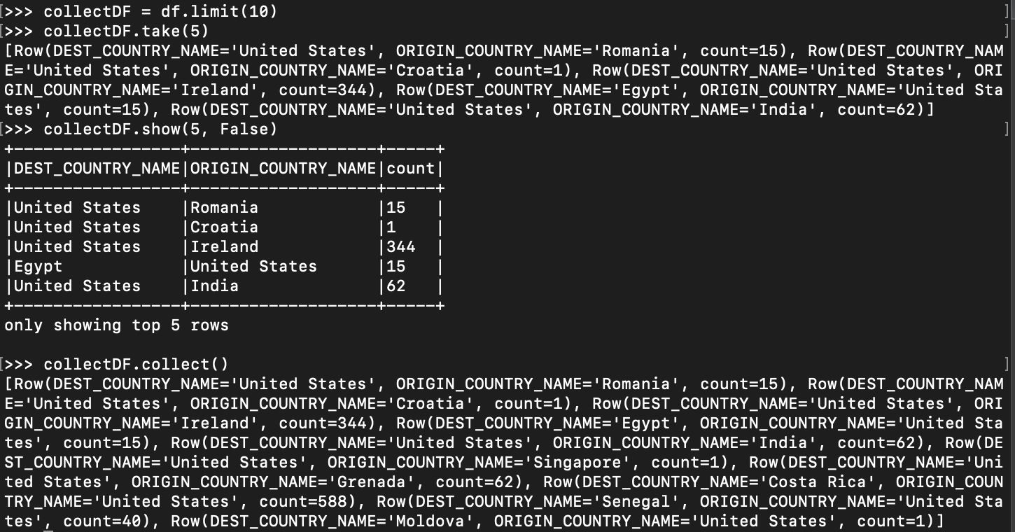 -> collect 메서드로 전체 데이터프레임의 모든 데이터를 수집