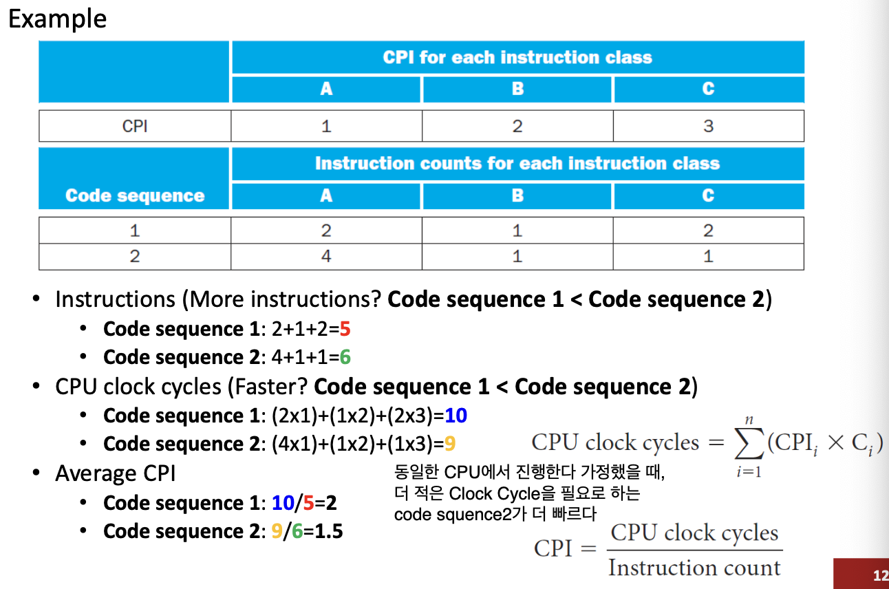 - Clock cycles Per Instruction (CPI) -> 각 명령이 수행되기 위해 필요한 clock cycle 개수