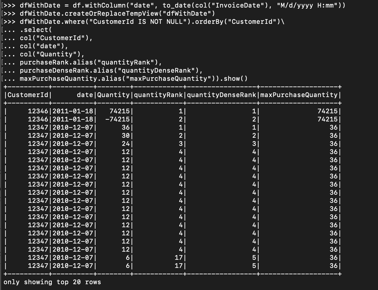 >>> spark.sql("""