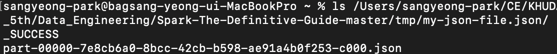... .save("/Users/sangyeong-park/CE/KHUDA_5th/Data_Engineering/Spark-The-Definitive-Guide-master/tmp/my-parquet-file.parquet")