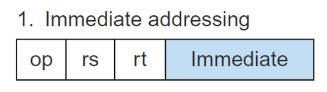 - operand가 메모리에 위치하고, 명령어의 const와 register의 합으로 주소 알아냄 -> 어레이의 시작점 + offset(lw, sw)