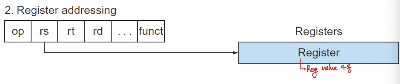 - 주소 필드가 메모리가 아닌, 레지스터를 가리키는 경우(R-format)