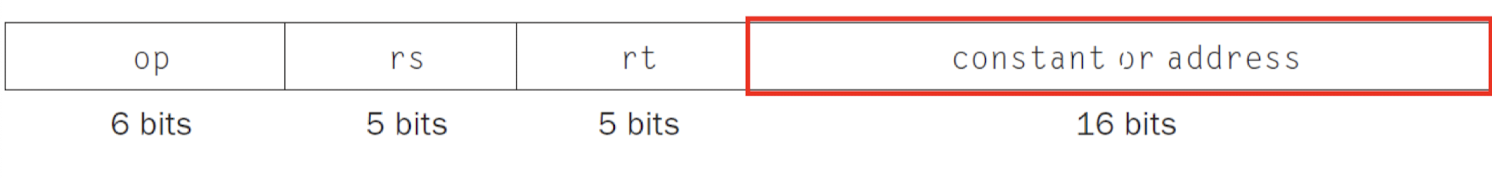 - I-format에서 immediate 파트에 16비트만 저장됨, 하지만 ALU에서는 32비트 레지스터끼리의 연산만 가능