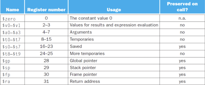 - $s0 ~ $s7: saved registers(preserve)