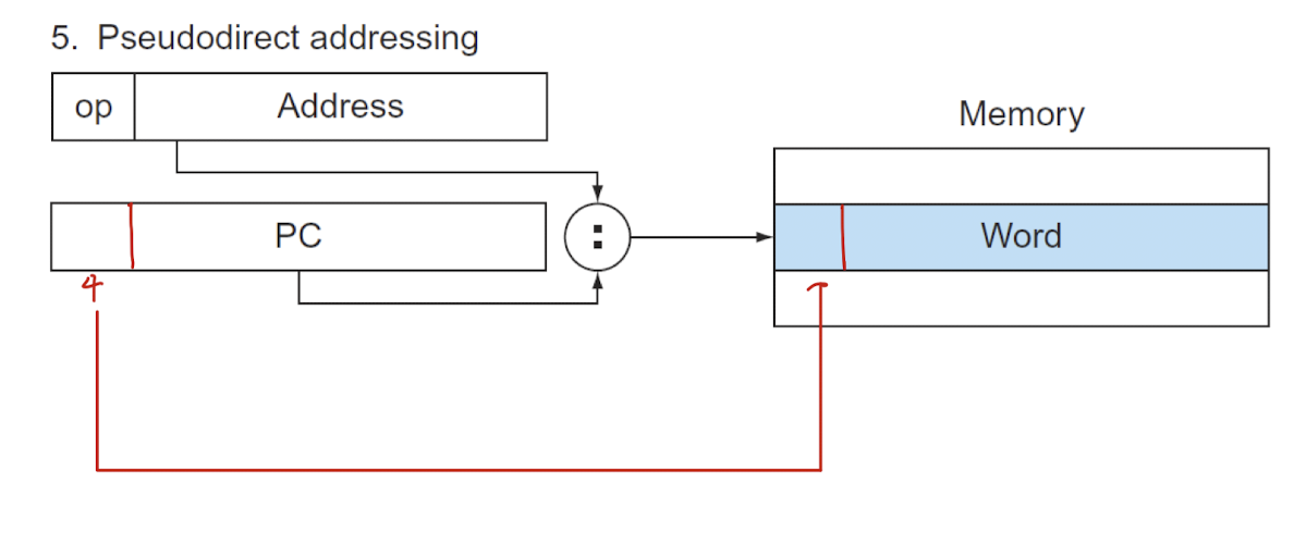 - pseudodirect addressing: jump에서 사용하는 주소 접근법