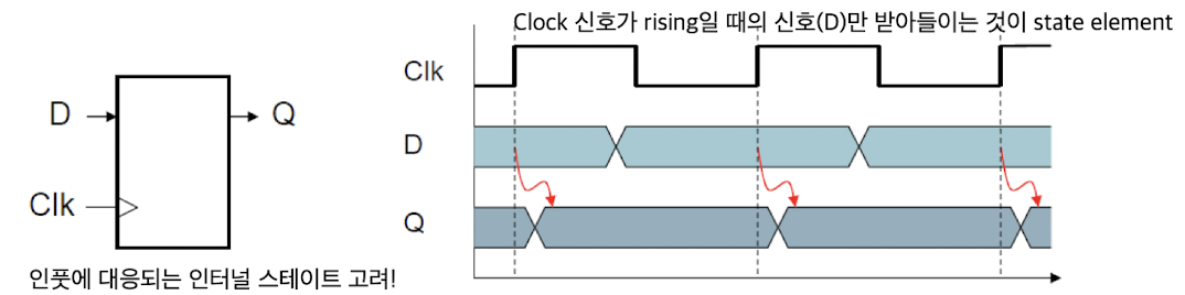 - State element: 데이터를 저장하기 위해 사용. inputs와 internal state의 contents에 의해서 output 결정