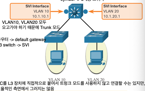 - SVI: L3 스위치에 구성된 가상 인터페이스