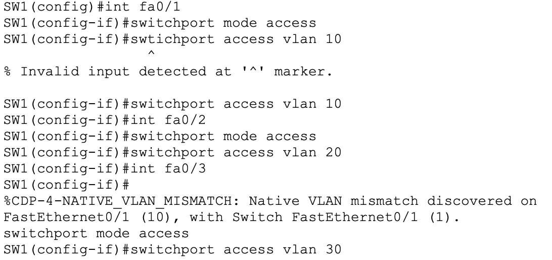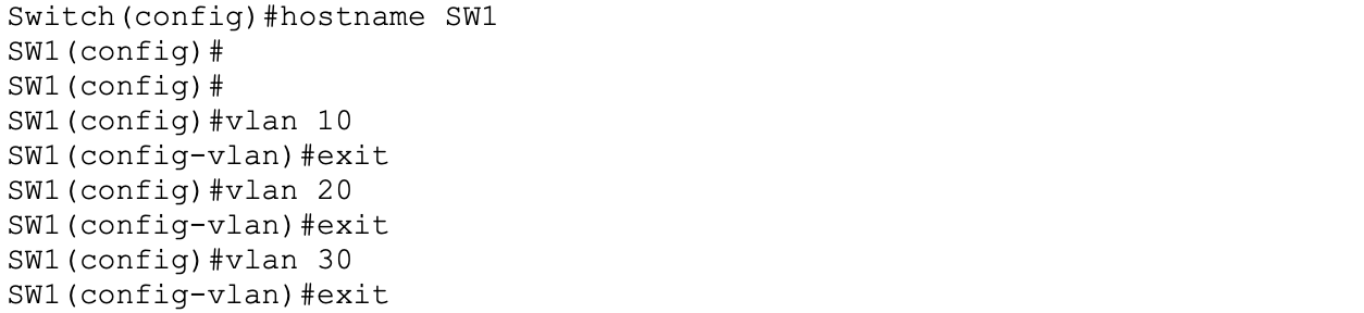 - S1 스위치 - S2 스위치: VLAN 트렁킹 구성 -> VLAN 생성 및 이름 지정, 관리 인터페이스 생성, 액세스 포트 구성, 트렁킹 포트 구성