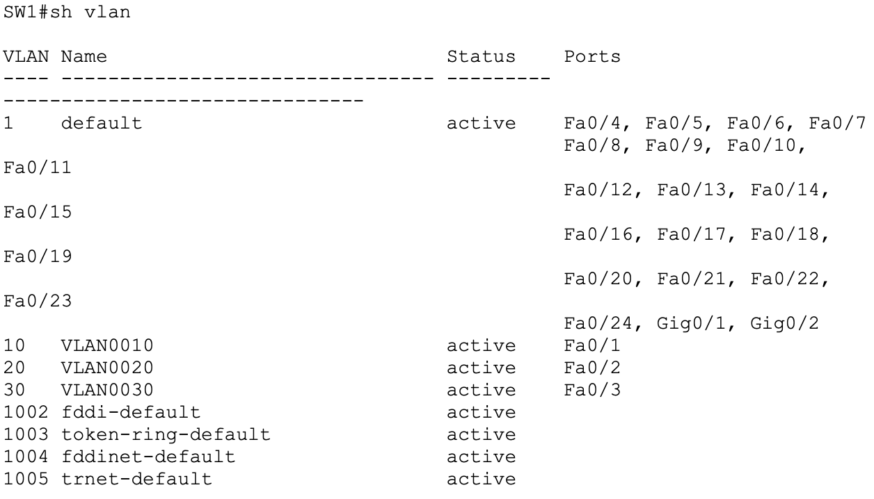 -> 각 interface에 vlan이 할당된 모습을 볼 수 있음