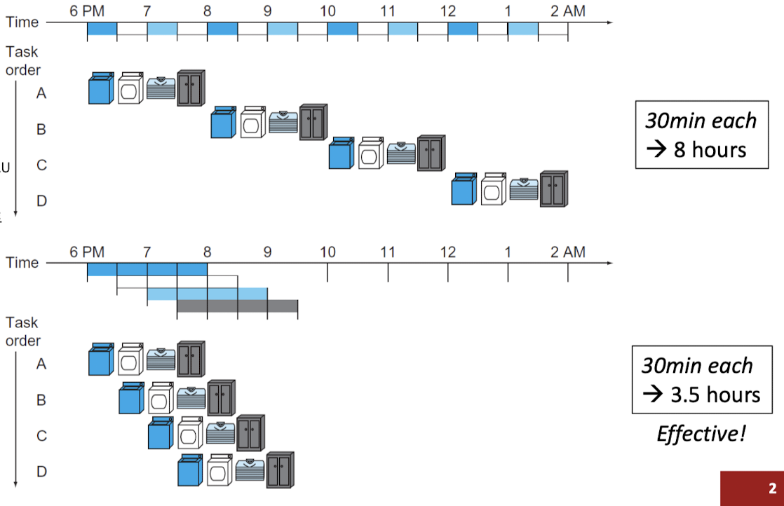 - Pipelined: 1,000,000 * 200ps + 1400ps -> (유사) 200,000,000ps