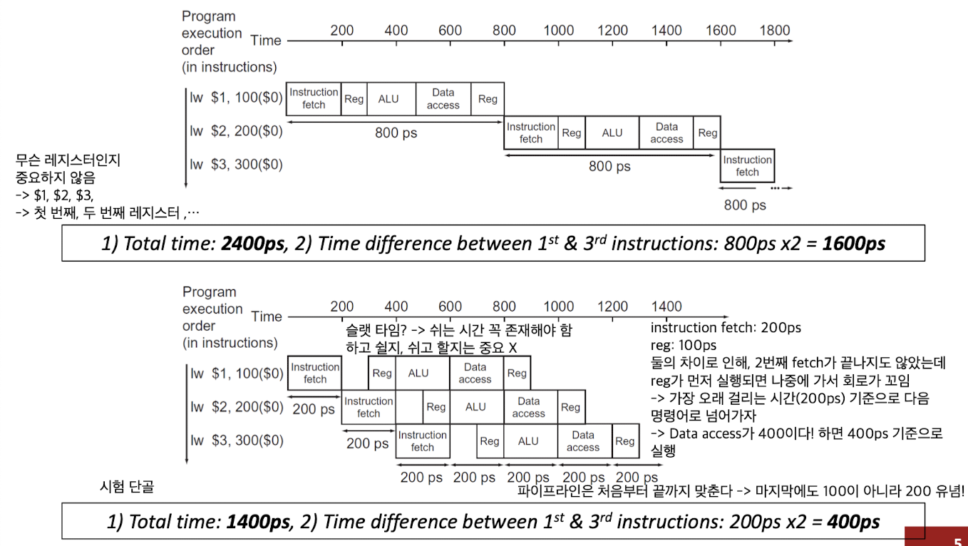- Nonpipelined: 1,000,000 * 800ps + 2400ps ->(유사) 800,000,000ps