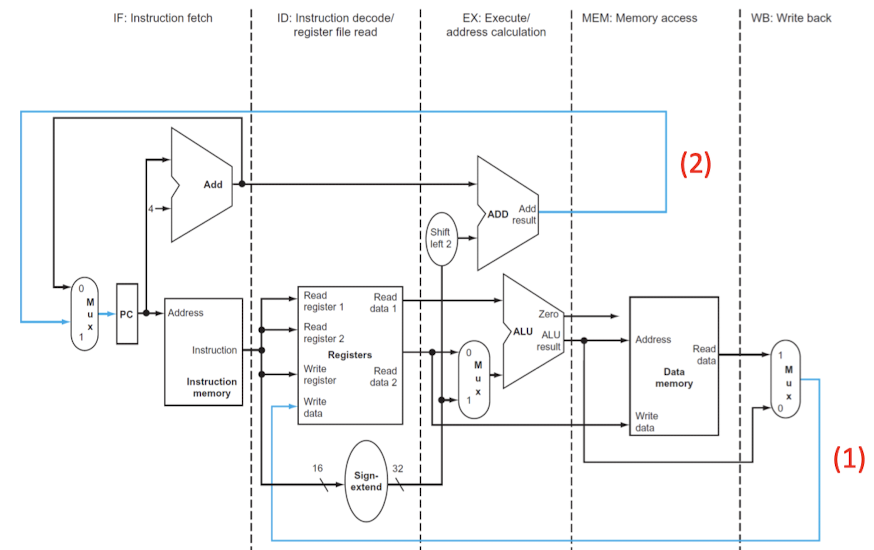 - WB stage의 다음에는 pipeline register가 없다.