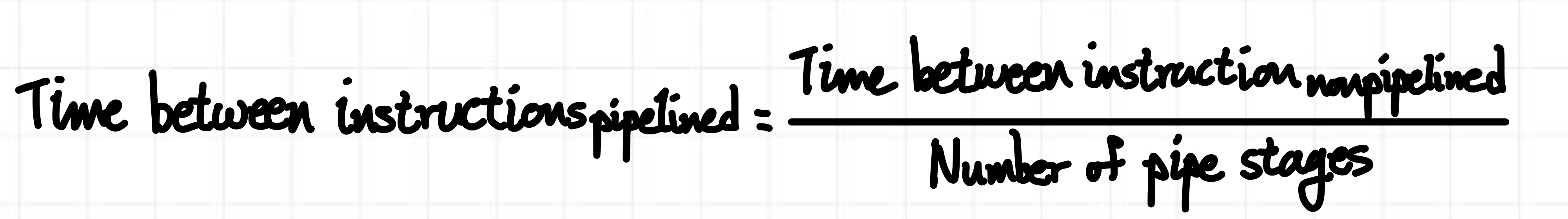 - Time between instructions(pipelined) != Time between instructions(nonpipelined) / Num of pipe stages