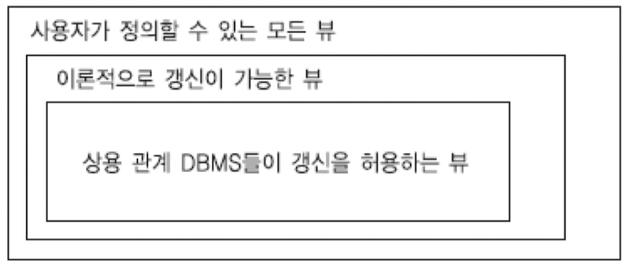 - 뷰에 대한 갱신도 기본 릴레이션에 대한 갱신으로 변환됨