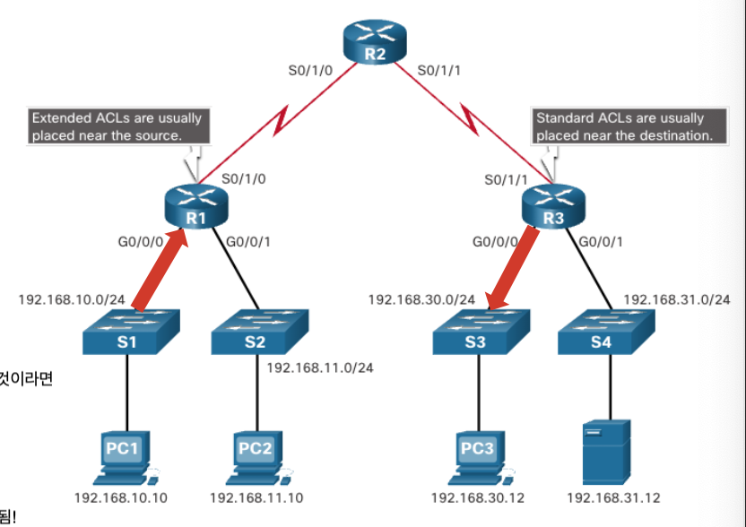 • 확장 ACL -> 출발지에 가능한 가까운 곳