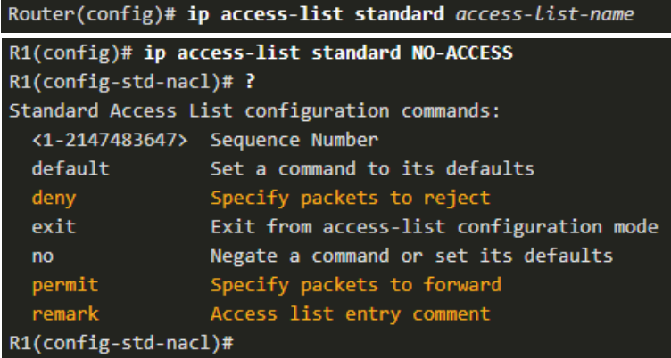 • named std ACL: ip access-list extended access-list-name