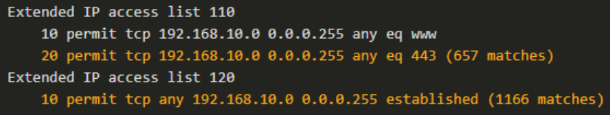 ip access-list etended BROWSING Remark Only permit returning HTTP and HTTPS traffic permit tcp any 192.168.10.0 0.0.0.255 estrablished exit