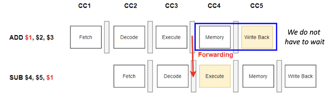 - 쉬어갈 필요 없이, exe 단계에서 나온 wb될 값을 미리 다음 명령어로 넘겨준다. (그렇다고 wb되는 것은 아님)