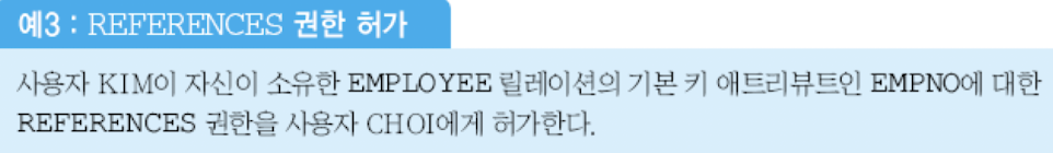 -> 뷰에 REFERENCES 권한 부여 불가능